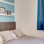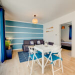 Apartament posiada sypialnię, łazienkę, salon z aneksem kuchennym, w którym znajduje się dwupalnikowa płyta grzewcza, mikrofalówka, lodówka oraz zestawy kuchenne do gotowania i spożywania posiłków, ogrzewanie.